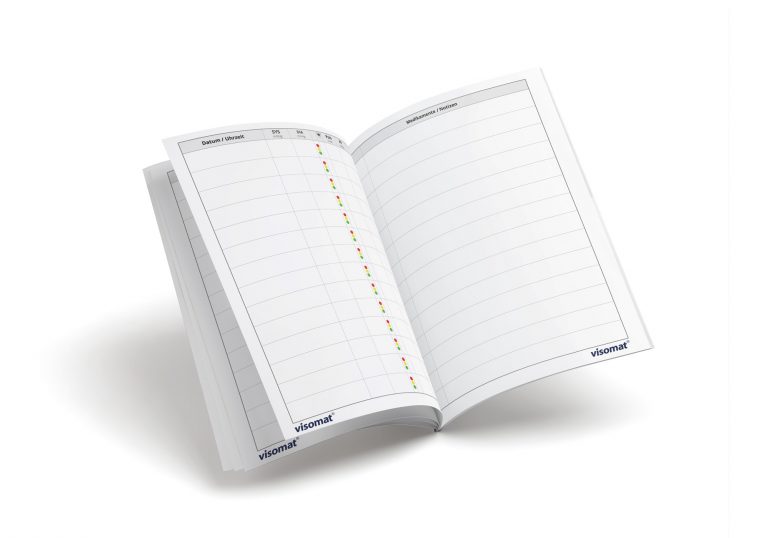 Een dagboek voor de gemeten bloeddrukwaardes voor een duidelijk overzicht.