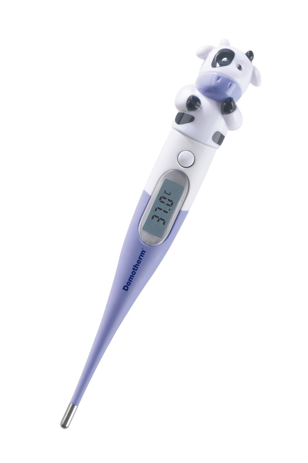 Domotherm Junior is een digitale thermometer speciaal voor kinderen. Met behulp van de verschillende dierlijke thema’s krijgt het kind een positief gevoel. De verschillende dierlijke thema’s zijn een kikker, een koe en een eend.
