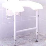 Douchekruk RMA. Epoxy gecoat aluminiumframe met witte zitting met uitsparing. Zitting 44-51 cm (h) /44 cm (b) 38 cm (d). Met wandbevestiging, met poten opklapbaar tegen de muur. Max. gebruikersgewicht 127kg.