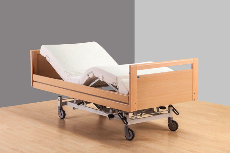 Hoog laag bed Sina Premis. Hoog laag verpleegbed. Hoogte verstelling 40-80 cm. Stalen raster. Max 150 kg. 90×200.met zijhekken.