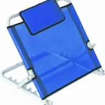 De rugleuning is vervaardigd uit een combinatie van staal, PP en PVC, wat zorgt voor een stabiele en langdurige constructie. Het stalen frame biedt extra stevigheid, terwijl de PVC bekleding in blauw gemakkelijk schoon te houden is. De rugsteun is voorzien van een comfortabel kussen en een wit frame voor een frisse uitstraling.
